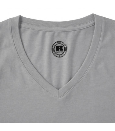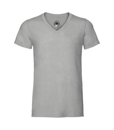 t-shirt manica corta scollo a v, 65% poliestere, 35% cotone pettinato ringspun, vestibilita' slim, fettuccia interna sulle spalle, cuciture laterali, etichetta adesiva rimovibile sul collo. bianco: 155 gr / colorato: 160 gr