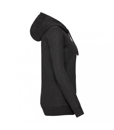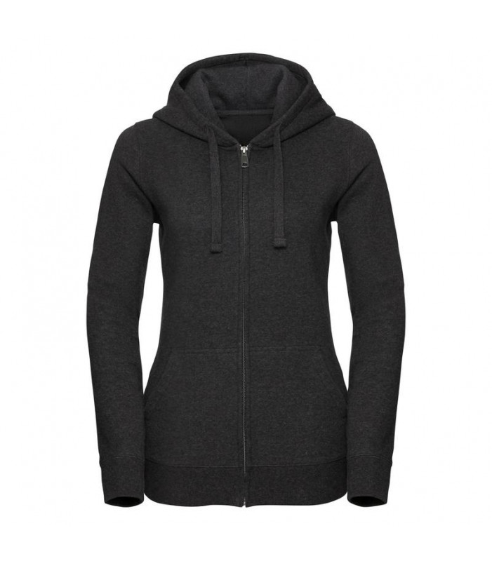 75% cotone ring-spun, 21% poliestere, 4% viscosa. felpa da donna con zip e cappuccio, tasca a marsupio, taglio sartoriale moderno e femminile, zip intera in metallo ykk. col. ca: 77% cot. 23% pol outer fabric 100% cot.