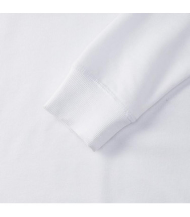 65% poliestere, 35% cotone pettinato ring spun. taglio slim e contemporaneo, nastrino a contrasto sul collo con dettaglio dell'impuntura, cuciture coperte su polsini e cintura, etichetta posteriore adesiva e rimovibile, french terry (tessuto non garzato).