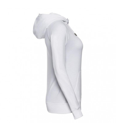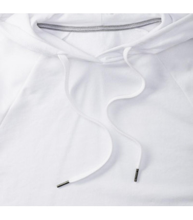 65% poliestere, 35% cotone pettinato ring spun. taglio slim e contemporaneo, nastrino a contrasto sul collo con dettaglio dell'impuntura, cuciture coperte su polsini e cintura, etichetta posteriore adesiva e rimovibile, cappuccio foderato in jersey con co