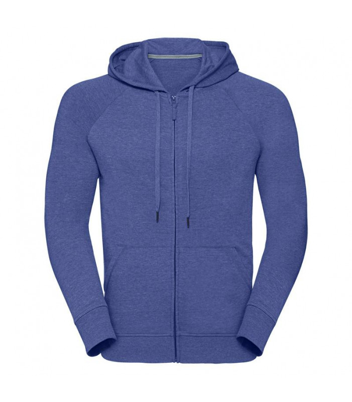 65% poliestere, 35% cotone pettinato ring spun. felpa con cerniera, maniche raglan, etichetta strappabile, cappuccio foderato in jersey con cordoncino piatto in tinta ed etremitã in metallo, tasca a marsupio, sgarzata, struttura con cuciture laterali.