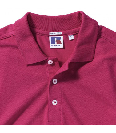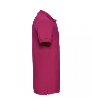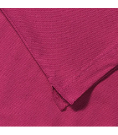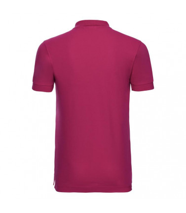 95% cotone, 5% lycra. polo estremamente morbida al tatto, 3 bottoni a contrasto. colletto con risvolto corto, spacchi laterali più corti con nastro a lisca di pesce.
