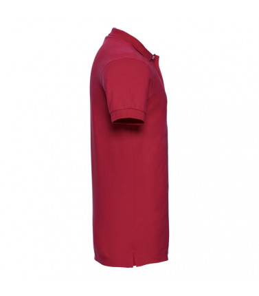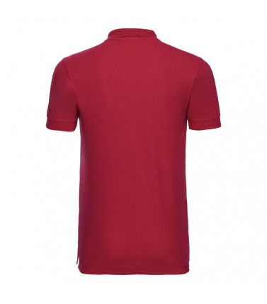 95% cotone, 5% lycra. polo estremamente morbida al tatto, 3 bottoni a contrasto. colletto con risvolto corto, spacchi laterali più corti con nastro a lisca di pesce.