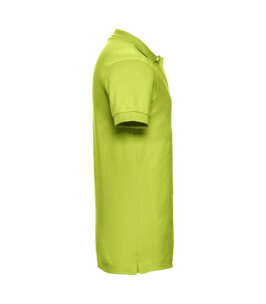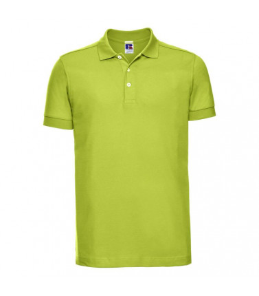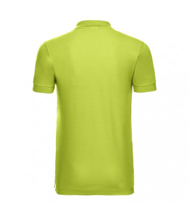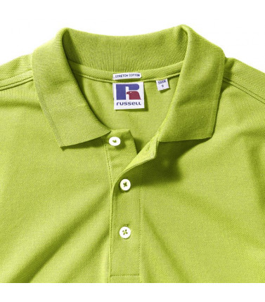 95% cotone, 5% lycra. polo estremamente morbida al tatto, 3 bottoni a contrasto. colletto con risvolto corto, spacchi laterali più corti con nastro a lisca di pesce.