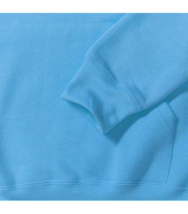 50% cotone pettinato ring spun, 50% poliestere,tasca marsupio, busto tubolare, felpata internamente. tessuto doppio sul collo. cordino piatto.