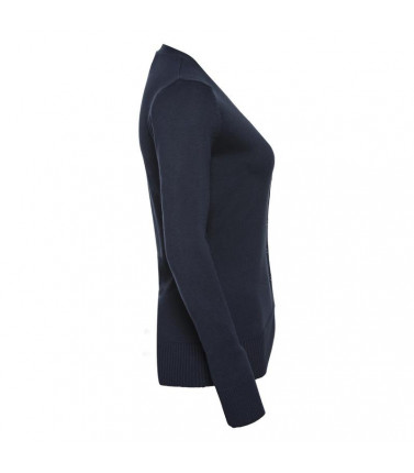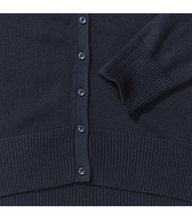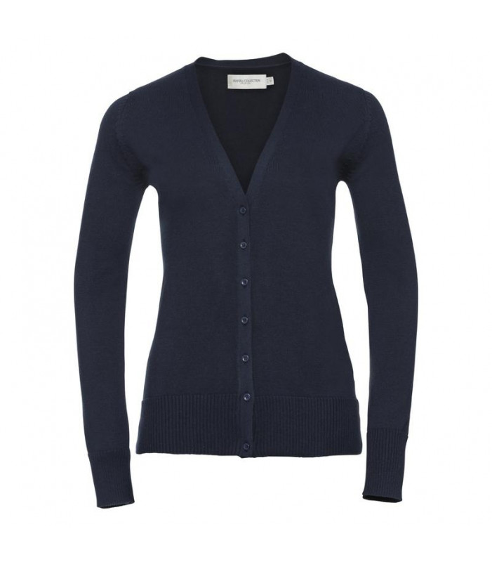 50% cotone, 50% acrilico, maglia liscia conscollo a v costina 1x1, polsini e girovita inelastane, 7 bottoni tono su tono, lavabile a40°c. resistente allasciugatrice. bottone diricambio.