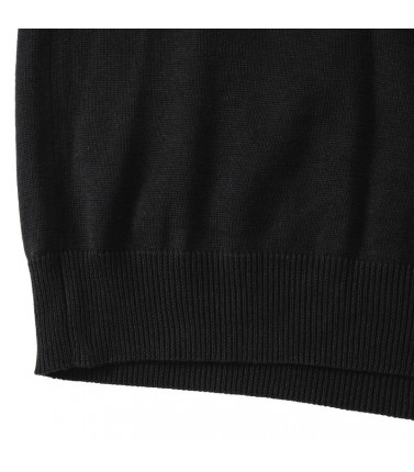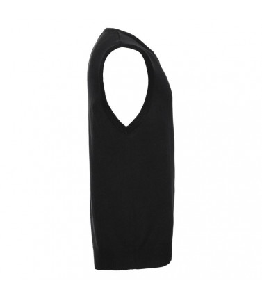 50% cotone, 50% acrilico, maglia liscia conscollo a v costina 1x1. gilet con giromanicastessa costina, polsini e girovita con elastane,lavabile a 40°c. resistente allasciugatrice.