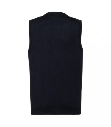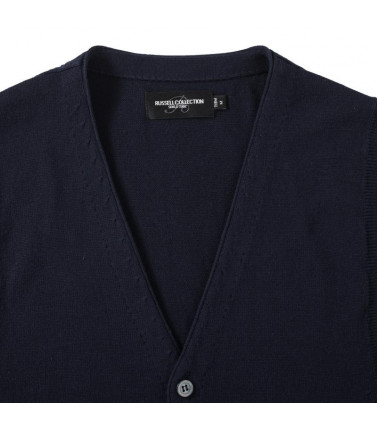 50% cotone, 50% acrilico. cardigan uomo smanicato con scollo a v, elastam su polsini e girovita, abbottonatura ricercata con rivestimento interno e bottoni in tinta, dettagli aderenti su scollo a v, giromaniche e spalle.