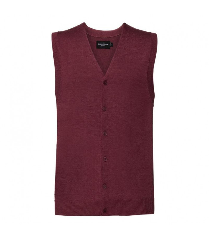 50% cotone, 50% acrilico. cardigan uomo smanicato con scollo a v, elastam su polsini e girovita, abbottonatura ricercata con rivestimento interno e bottoni in tinta, dettagli aderenti su scollo a v, giromaniche e spalle.