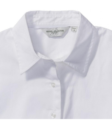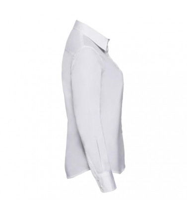 camicia manica lunga twil 100% cotone in tessutomano pesca. linea attillata femminile. morbidocolletto, polsino stondato con 2 bottoni, orlostondato. bottone di ricambio.