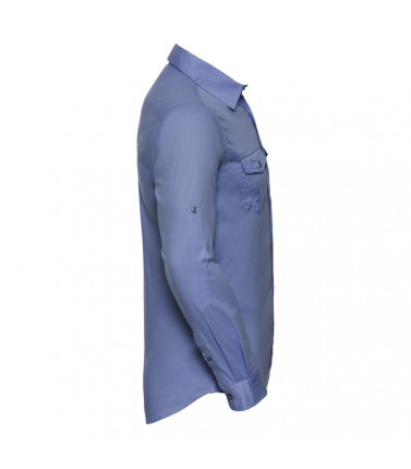 camicia twill 100% cotone, appena aderente intessuto mano pesca. manica con risvoltoarrotolabile e fermabile grazie ad un bottoneesterno ed aletta interna. orlo squadrato suldavanti, stondato e più lungo sul dietro. bottonedi ricambio.