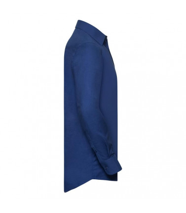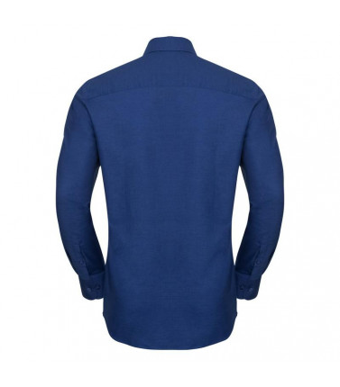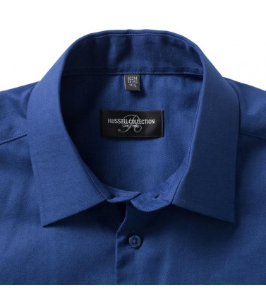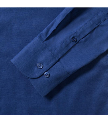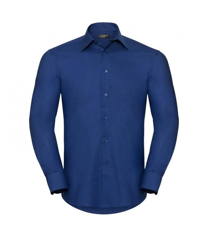 70% cotone oxford pettinato, 30% poliestere.taglio contemporaneo con colletto semi francesecon stecche. polsino regolabile con 2 bottoni eocchiello per gemelli. orlo stondato. bottone diricambio.