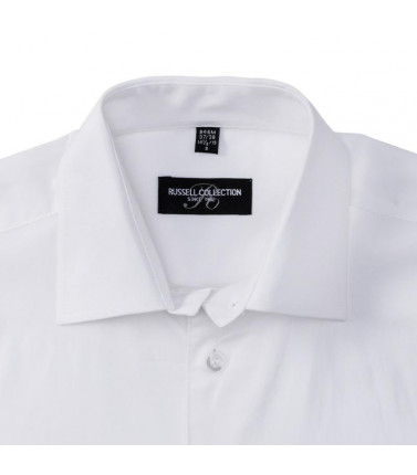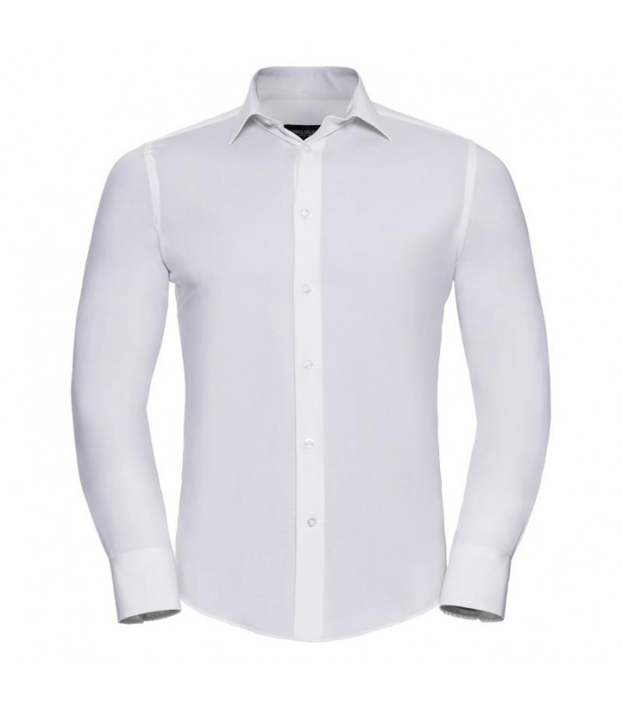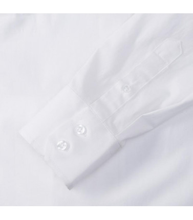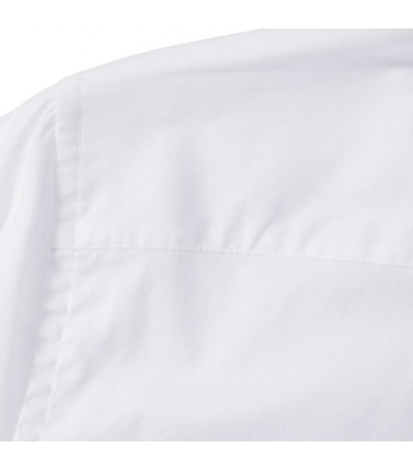 97% cotone, 3% elastane. elegante collettosemiaperto con bottone singolo perlato, orlostondato, polsino stondato con 2 bottoni. bottonedi riserva.