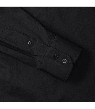 97% cotone, 3% elastane. elegante collettosemiaperto con bottone singolo perlato, orlostondato, polsino stondato con 2 bottoni. bottonedi riserva.