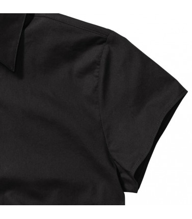 camicia attillata 97% cotone 3% elastane per lamassima comodità e vestibilità. elegante collettosemi aperto con bottone singolo perlato, orlostondato. modello donna con pince dietro, davantie al seno. bottone di riserva.camicia attillata 97% cotone 3% ela