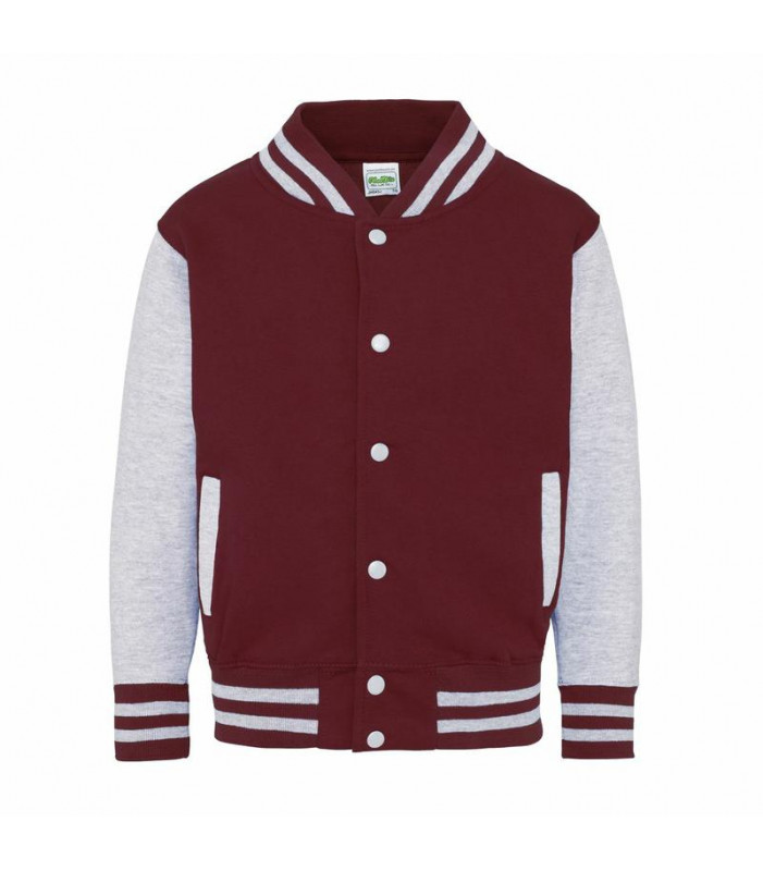 80% cotone, 20% poliestere. felpa a giacca tipo baseball. maniche a contrasto. collo, polsini e cintura lavorati con dettaglio a righe, chiusura con bottoni automatici a contrasto. tasche a filetto in contrato, nastro di rinforzo al coll. tasca con piccol
