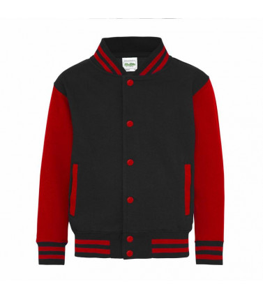 80% cotone, 20% poliestere. felpa a giacca tipo baseball. maniche a contrasto. collo, polsini e cintura lavorati con dettaglio a righe, chiusura con bottoni automatici a contrasto. tasche a filetto in contrato, nastro di rinforzo al coll. tasca con piccol