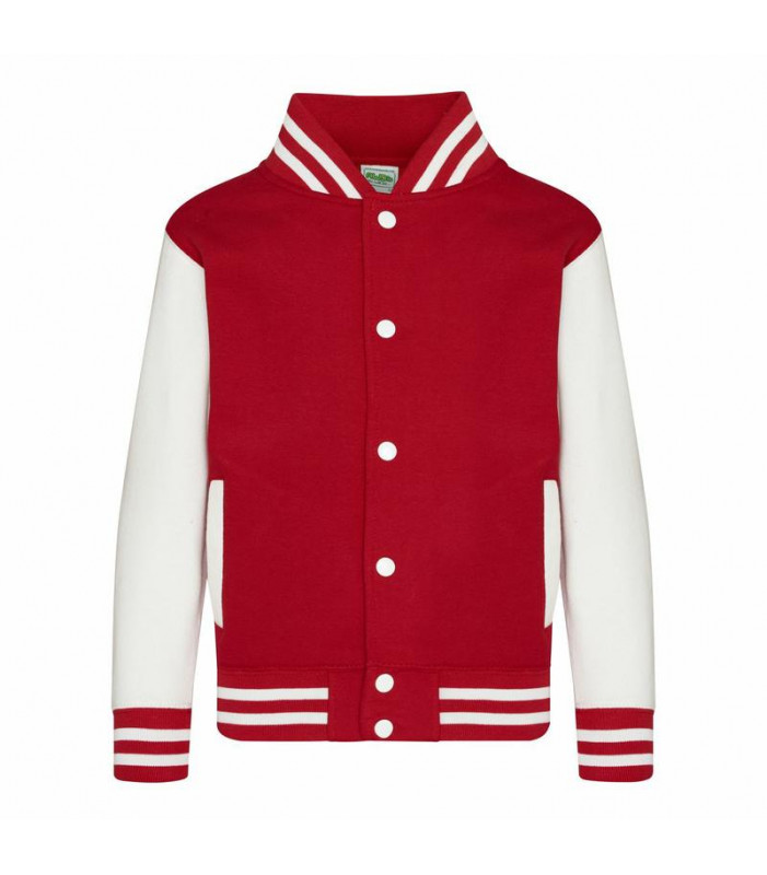 80% cotone, 20% poliestere. felpa a giacca tipo baseball. maniche a contrasto. collo, polsini e cintura lavorati con dettaglio a righe, chiusura con bottoni automatici a contrasto. tasche a filetto in contrato, nastro di rinforzo al coll. tasca con piccol