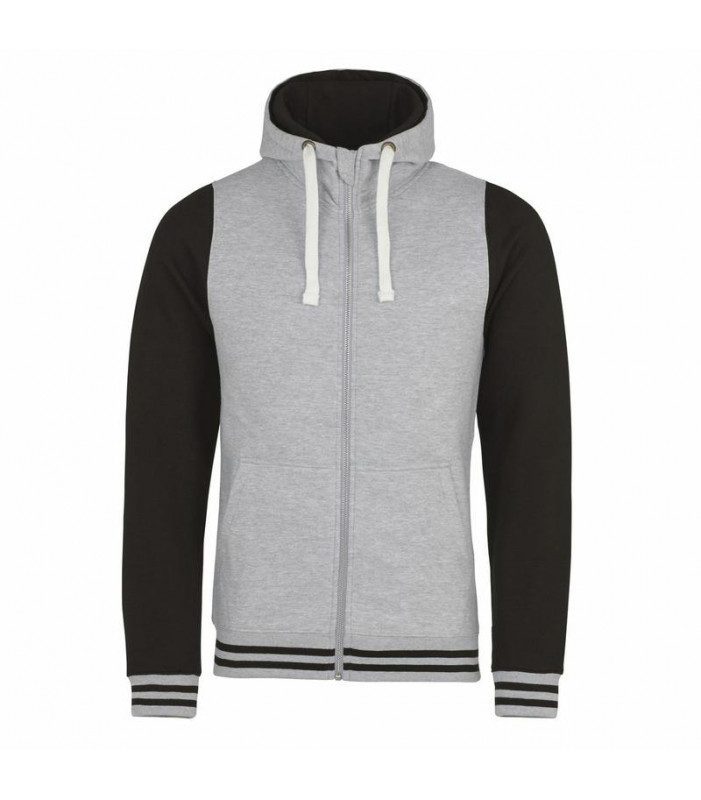 80% cotone ring-spun, 20% poliestere. felpa con zip intera e cappuccio, cordini piatti, maniche e interno del cappuccio a contrasto, polsini e orlo inferiore a costine, con dettaglio a righe. tasche a marsupio con passante per cuffie cellulare o ipod e 2