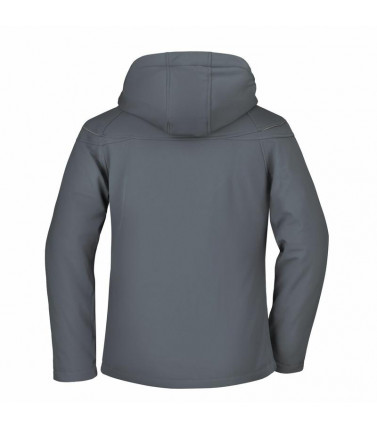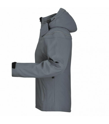 giacca invernale in softshell, tessuto funzionale a 3 strati con membrana tpu, idrorepellente e antivento (5.000 mm colonna d'acqua), traspirante e permeabile al vapore, le cuciture non sono chiuse, cappuccio staccabile, imbottito e foderato, colletto in caldo pile, cerniere sotto le maniche per un'ulteriore ventilazione, protezione antivento totale , filetti a costa riflettenti sulle spalle e sulle tasche anteriori, 2 tasche anteriori, 1 taschino interno e tasca portacellulare, cerniera bidirezionale, cordino elastico con stopper in vita e sul cappuccio, leggermente sciancrata. cerniera per ricamo sulla schiena. 95% poliestere, 5% elastan, fodera: 100% poliestere, imbottitura: 100% poliestere, colonna d'acqua 5.000 mm, imbottito, antivento e idrofugo