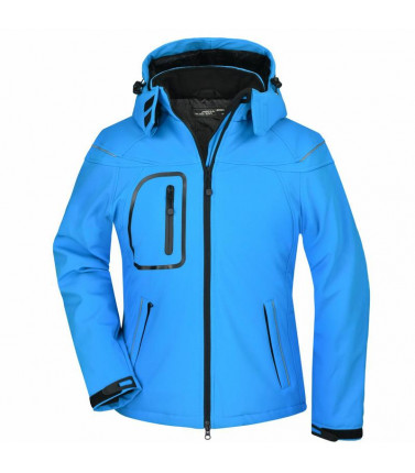 giacca invernale in softshell, tessuto funzionale a 3 strati con membrana tpu, idrorepellente e antivento (5.000 mm colonna d'acqua), traspirante e permeabile al vapore, le cuciture non sono chiuse, cappuccio staccabile, imbottito e foderato, colletto in caldo pile, cerniere sotto le maniche per un'ulteriore ventilazione, protezione antivento totale , filetti a costa riflettenti sulle spalle e sulle tasche anteriori, 2 tasche anteriori, 1 taschino interno e tasca portacellulare, cerniera bidirezionale, cordino elastico con stopper in vita e sul cappuccio, leggermente sciancrata. cerniera per ricamo sulla schiena. 95% poliestere, 5% elastan, fodera: 100% poliestere, imbottitura: 100% poliestere, colonna d'acqua 5.000 mm, imbottito, antivento e idrofugo