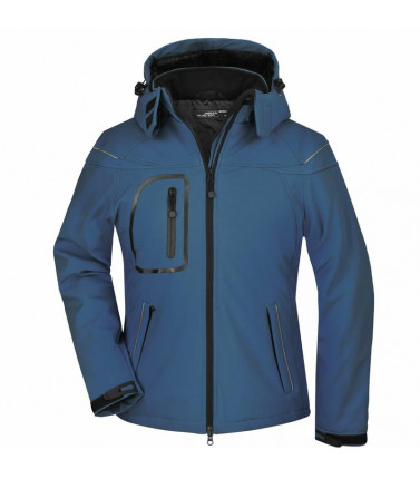 giacca invernale in softshell, tessuto funzionale a 3 strati con membrana tpu, idrorepellente e antivento (5.000 mm colonna d'acqua), traspirante e permeabile al vapore, le cuciture non sono chiuse, cappuccio staccabile, imbottito e foderato, colletto in caldo pile, cerniere sotto le maniche per un'ulteriore ventilazione, protezione antivento totale , filetti a costa riflettenti sulle spalle e sulle tasche anteriori, 2 tasche anteriori, 1 taschino interno e tasca portacellulare, cerniera bidirezionale, cordino elastico con stopper in vita e sul cappuccio, leggermente sciancrata. cerniera per ricamo sulla schiena. 95% poliestere, 5% elastan, fodera: 100% poliestere, imbottitura: 100% poliestere, colonna d'acqua 5.000 mm, imbottito, antivento e idrofugo