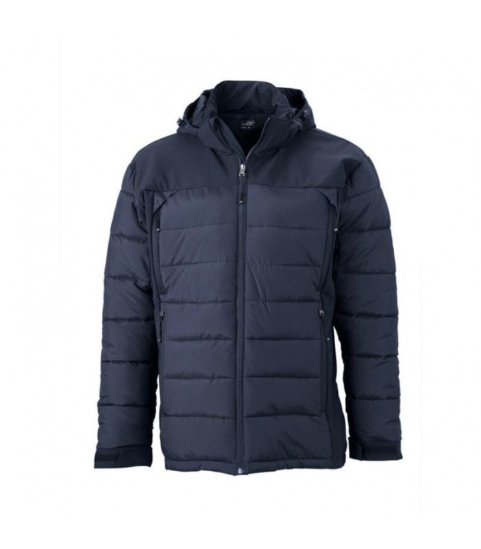 giacca termica in materiale misto tecnico, elementi cuciti sul retro imbottiti, inserti softshell elastici, antivento e acqua repellenti, cappuccio softshell staccabile e regolabile, protezione dal vento rinforzata dalla protezione mento, 4 tasche frontali con contrasto di cerniera, tasca interna con cerniera, tasca in maglia interna, stampa riflettente sul retro, tessuto esterno: 95% poliestere, 5% elastan, tessuto esterno 2: 100% poliammide, fodera: 100% poliestere, imbottitura: 100% poliestere, velcro, pence sulla schiena, trapuntato, thermo, imbottito, antivento e idrofugo