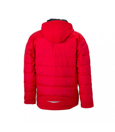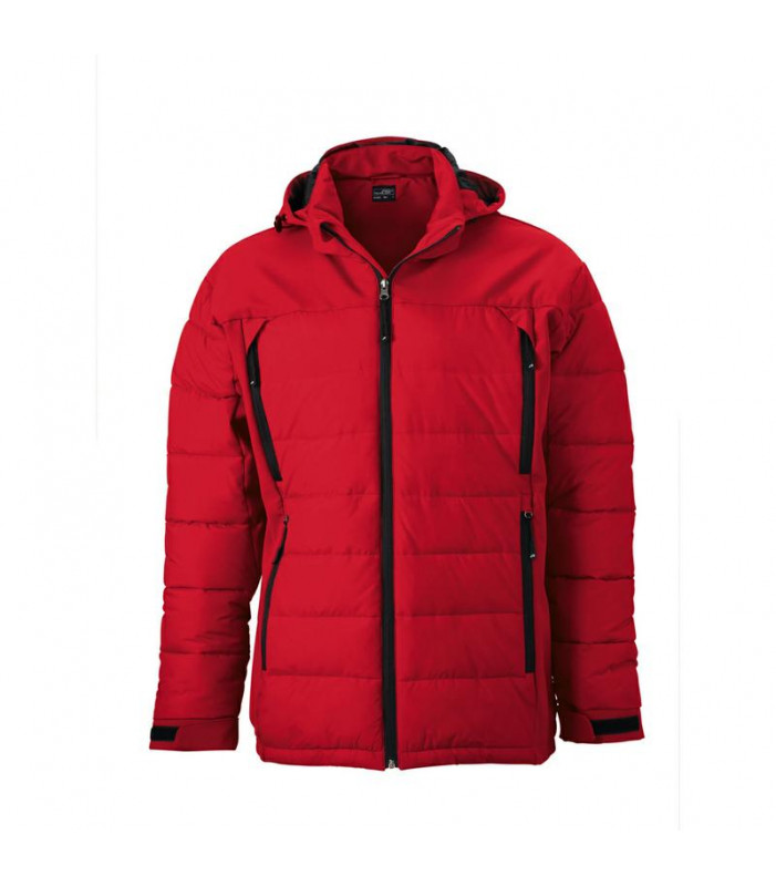 giacca termica in materiale misto tecnico, elementi cuciti sul retro imbottiti, inserti softshell elastici, antivento e acqua repellenti, cappuccio softshell staccabile e regolabile, protezione dal vento rinforzata dalla protezione mento, 4 tasche frontali con contrasto di cerniera, tasca interna con cerniera, tasca in maglia interna, stampa riflettente sul retro, tessuto esterno: 95% poliestere, 5% elastan, tessuto esterno 2: 100% poliammide, fodera: 100% poliestere, imbottitura: 100% poliestere, velcro, pence sulla schiena, trapuntato, thermo, imbottito, antivento e idrofugo