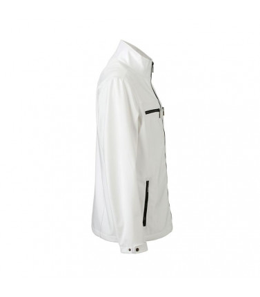 giacca alla moda nuovo design, softshell tessuto liscio superficie impermeabile, lunga zip frontale, collo rigido, 2 tasche laterale e 2 tasche davanti con zip, regolazione della taglia per orli maniche con bottoni automatici, avvitata, 100% poliestere, fodera in rete, colletto alla coreana, antivento e idrofugo