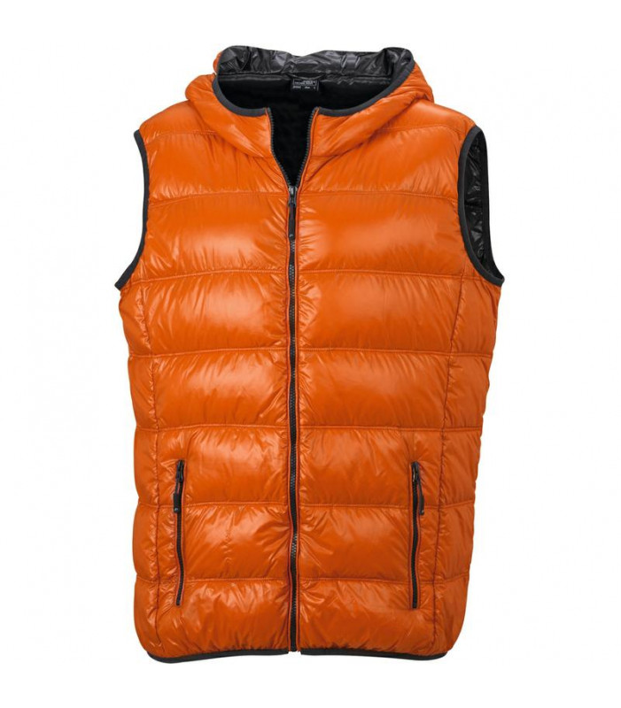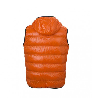 materiale esterno e fodera: 100% poliammide. imbottitura: 90% piuma, 10% penna. piumino smanicato ultraleggero reversibile, con cappuccio in stile casual. soffice, leggero, tessuto antivento, impermeabile. la giacca è facilmente inseribile in borsa separa
