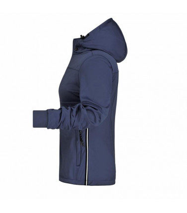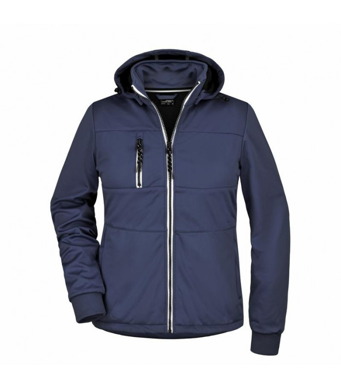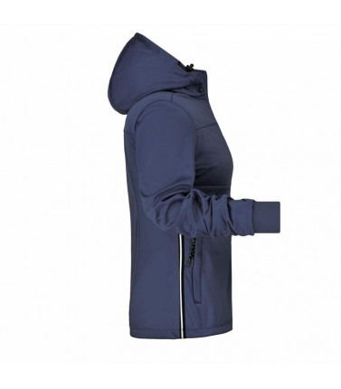 giacca giovanile softshell con dettagli alla moda, tessuto funzionale a 3 strati con membrana tpu. antivento e idrorepellente (colonna d'acqua 5.000 mm), traspirante e permeabile al vapore, cuciture non nastrate, collo a listino, cappuccio separabile, 2 tasche laterali, 1 taschino interno con cerniera, cappuccio e cintura con cordoncino elastico con fermaglio, cerniera per ricamo, cerniere e nastro laterale in colore contrastantepolsini lavorati a maglia, leggermente avvitata, tessuto esterno 100% poliestere, doubleface, colletto alla coreana, taglio sciancrato, colonna d'acqua 5.000 mm, antivento e idrofugo