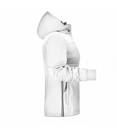 giacca giovanile softshell con dettagli alla moda, tessuto funzionale a 3 strati con membrana tpu. antivento e idrorepellente (colonna d'acqua 5.000 mm), traspirante e permeabile al vapore, cuciture non nastrate, collo a listino, cappuccio separabile, 2 tasche laterali, 1 taschino interno con cerniera, cappuccio e cintura con cordoncino elastico con fermaglio, cerniera per ricamo, cerniere e nastro laterale in colore contrastantepolsini lavorati a maglia, leggermente avvitata, tessuto esterno 100% poliestere, doubleface, colletto alla coreana, taglio sciancrato, colonna d'acqua 5.000 mm, antivento e idrofugo