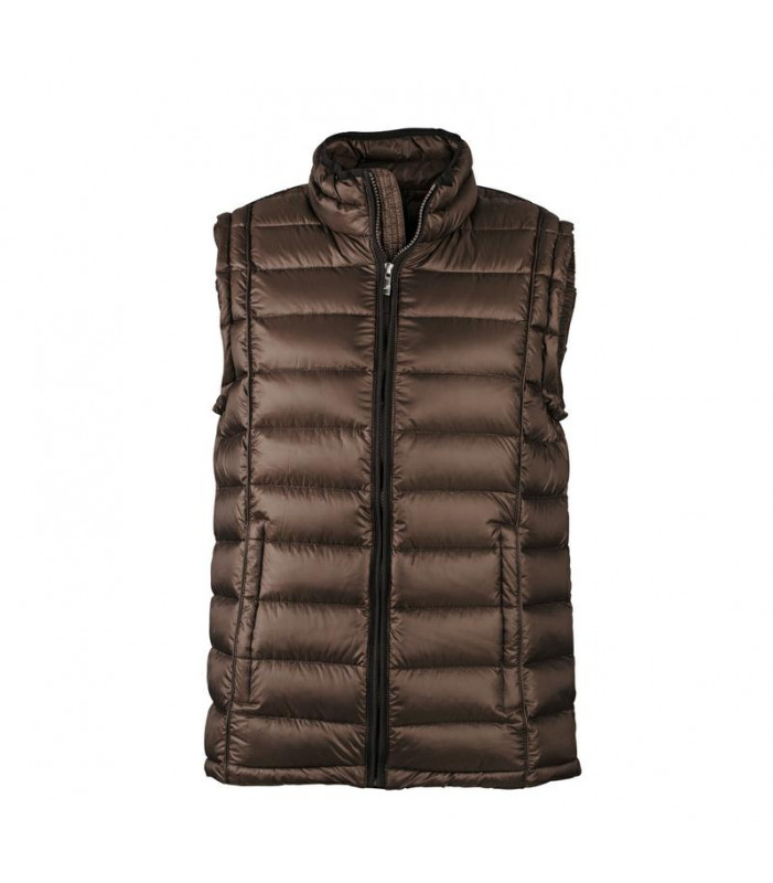 tessuto esterno e fodera: 100% poliestere. imbottitura: 90% piuma, 10% penne. gilet sportivo con collo rialzato, tessuto morbido, antivento e idrorepellente. rifiniture a contrasto su zip e colletto, due tasche laterali e una interna con cerniera. giroman