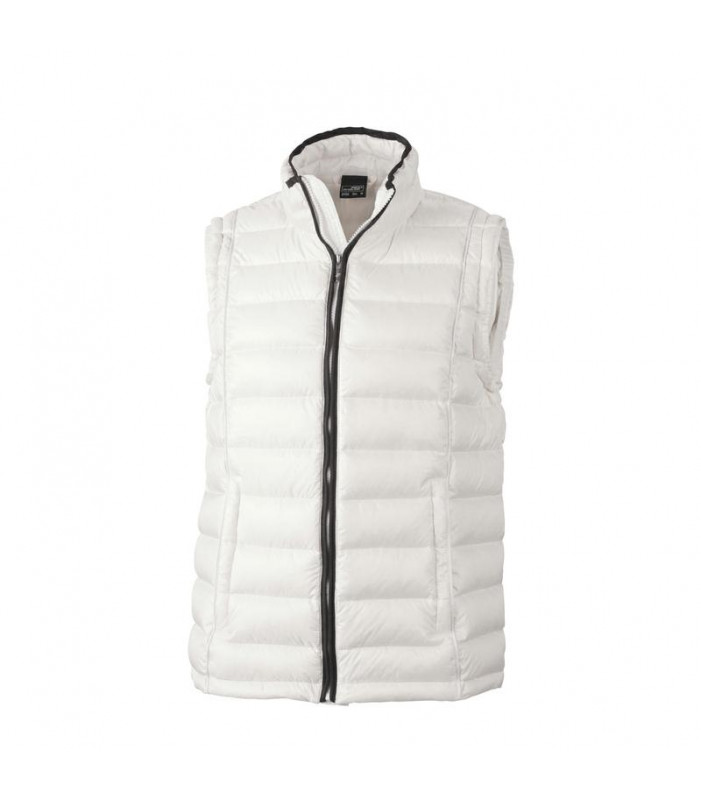 tessuto esterno e fodera: 100% poliestere. imbottitura: 90% piuma, 10% penne. gilet sportivo con collo rialzato, tessuto morbido, antivento e idrorepellente. rifiniture a contrasto su zip e colletto, due tasche laterali e una interna con cerniera. giroman