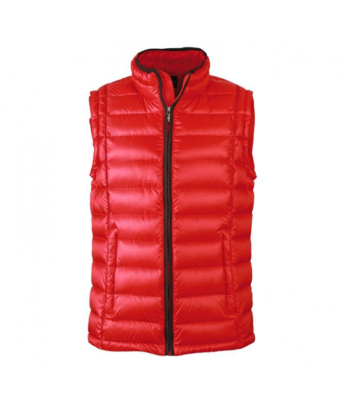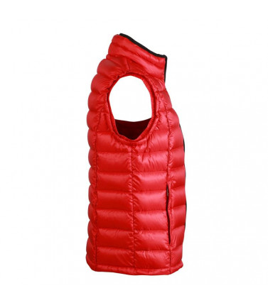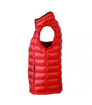 tessuto esterno e fodera: 100% poliestere. imbottitura: 90% piuma, 10% penne. gilet sportivo con collo rialzato, tessuto morbido, antivento e idrorepellente. rifiniture a contrasto su zip e colletto, due tasche laterali e una interna con cerniera. giroman