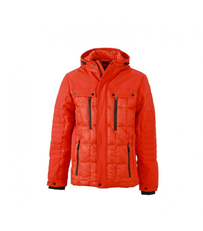 giacca alla moda in mix di materiali modernissimi, elementi cuciti sul retro imbottiti, inserti softshell elastici, antivento e idrorepellente, cappuccio regolabile e imbottito, cerniera a 2 direzioni nascosta davanti con pattina , 4 tasche frontali con c