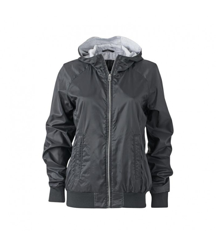 esterno: 100% poliammide. interno: 65% poliestere, 35% cotone. giacca casual per il tempo libero. leggera, resistente all'acqua e al vento, polsini e girovita in costina, 2 tasche laterali con zip, cappuccio. zip sul retro per facilitare la personalizzazi