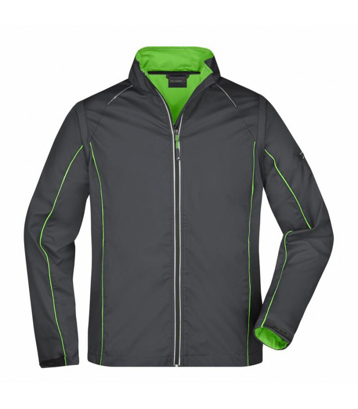 100% poliestere. tessuto funzionale a 3 strati con membrana tpu, antivento e idrorepellente (colonna d'acqua 5.000 mm), traspirante e permeabile al vapore, cuciture non nastrate. collo alto, interno in colore a contrasto, piping a contrasto sul davanti, s