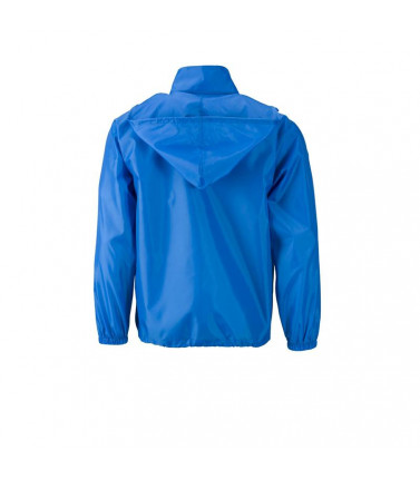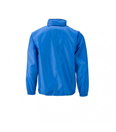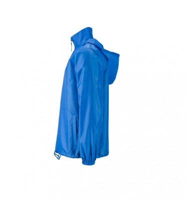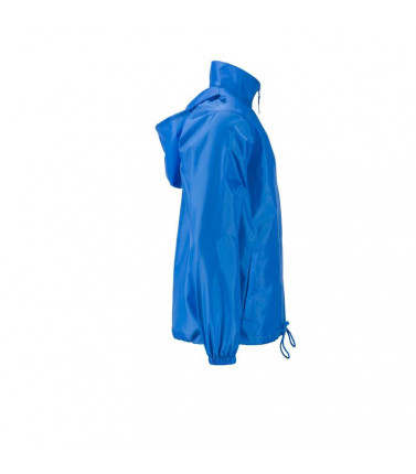 100% poliestere. tessuto leggero, antivento e idrorepellente (colonna d'acqua 600 mm). 2 tasche laterali, cappuccio con cordoncino integrato nel collo, bande elastiche sulle maniche. la giacca può essere facilmente riposta nella tasca laterale e si può co