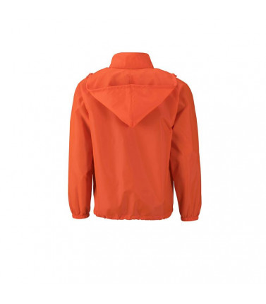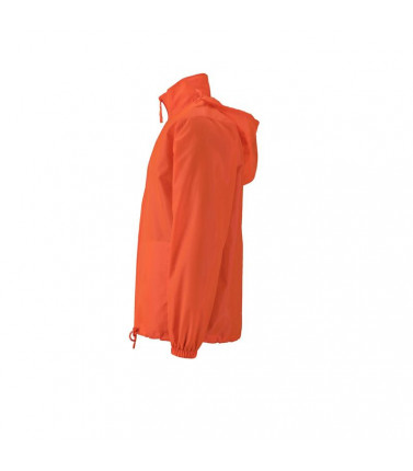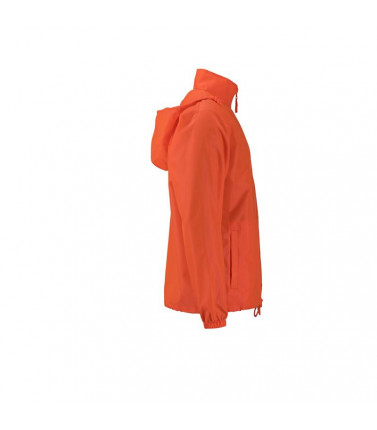 100% poliestere. tessuto leggero, antivento e idrorepellente (colonna d'acqua 600 mm). 2 tasche laterali, cappuccio con cordoncino integrato nel collo, bande elastiche sulle maniche. la giacca può essere facilmente riposta nella tasca laterale e si può co