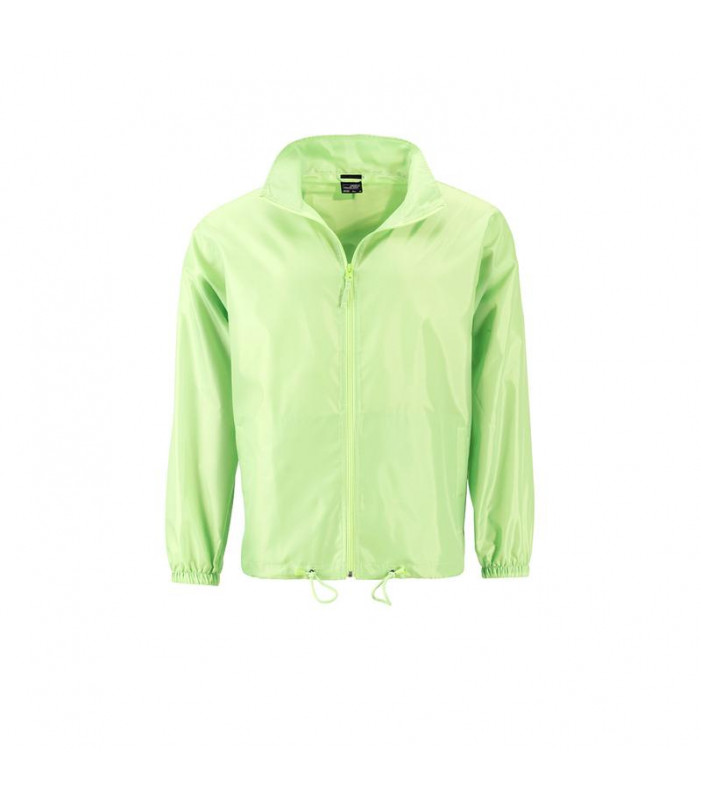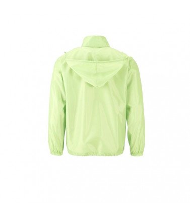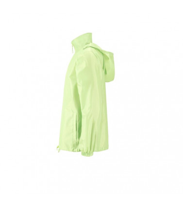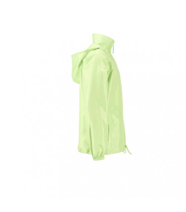 100% poliestere. tessuto leggero, antivento e idrorepellente (colonna d'acqua 600 mm). 2 tasche laterali, cappuccio con cordoncino integrato nel collo, bande elastiche sulle maniche. la giacca può essere facilmente riposta nella tasca laterale e si può co