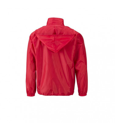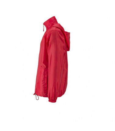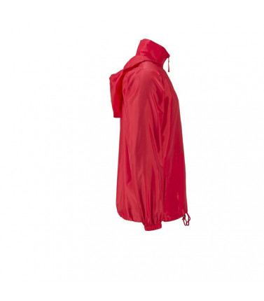 100% poliestere. tessuto leggero, antivento e idrorepellente (colonna d'acqua 600 mm). 2 tasche laterali, cappuccio con cordoncino integrato nel collo, bande elastiche sulle maniche. la giacca può essere facilmente riposta nella tasca laterale e si può co