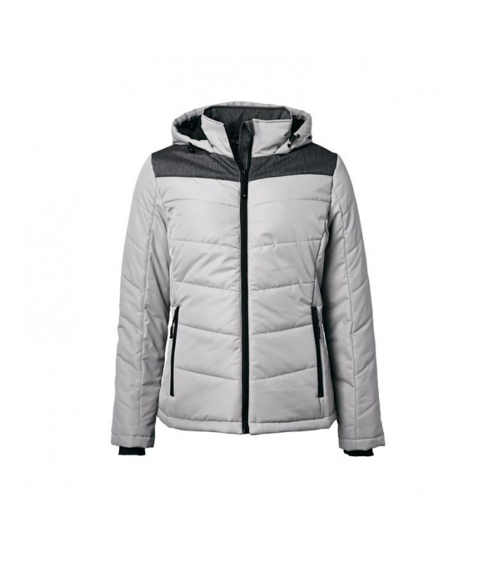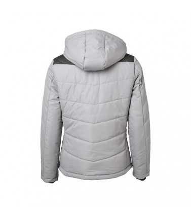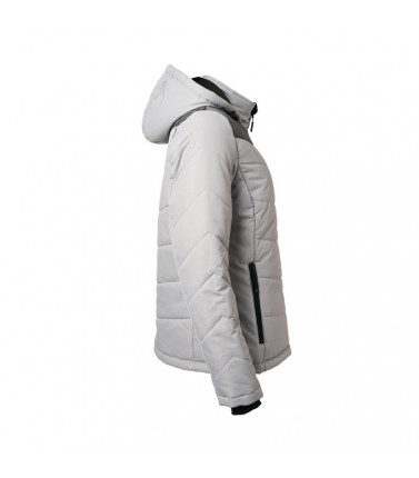 giacca invernale donna, imbottita, antivento e idrorepellente (colonna d'acqua 1,500 mm), cuciture nei pannelli, con colletto sostenuto e con cappuccio aggiustabile, polsini delle maniche elasticizzati, tasche laterali chiuse con cerniera, 1 tasca interna, cerniera decorativa sul retro, avvitato