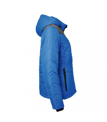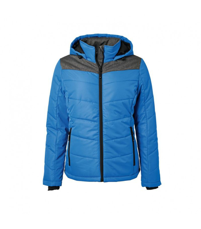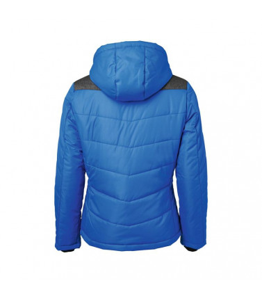 giacca invernale donna, imbottita, antivento e idrorepellente (colonna d'acqua 1,500 mm), cuciture nei pannelli, con colletto sostenuto e con cappuccio aggiustabile, polsini delle maniche elasticizzati, tasche laterali chiuse con cerniera, 1 tasca interna, cerniera decorativa sul retro, avvitato