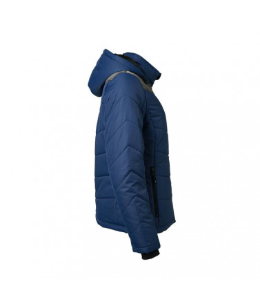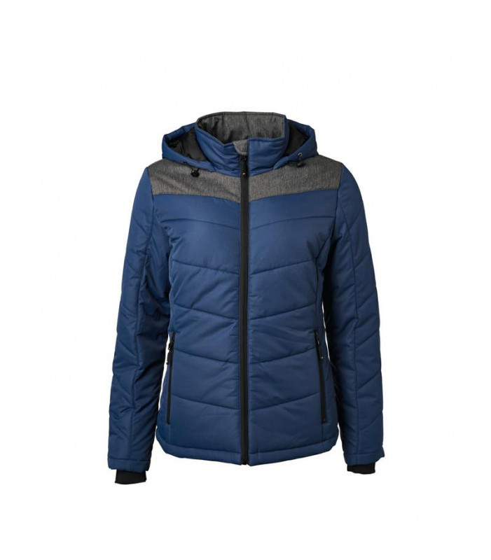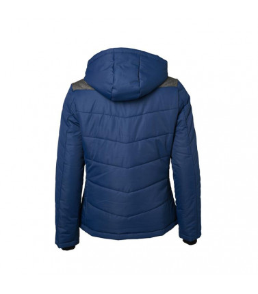 giacca invernale donna, imbottita, antivento e idrorepellente (colonna d'acqua 1,500 mm), cuciture nei pannelli, con colletto sostenuto e con cappuccio aggiustabile, polsini delle maniche elasticizzati, tasche laterali chiuse con cerniera, 1 tasca interna, cerniera decorativa sul retro, avvitato