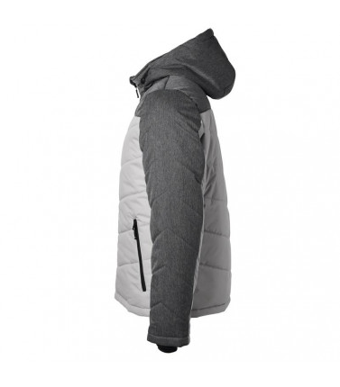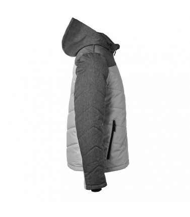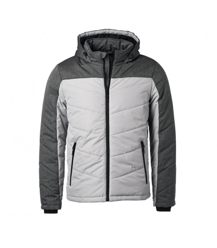 giacca invernale uomo, imbottita, antivento e idrorepellente (colonna d'acqua 1,500 mm), cuciture nei pannelli, con colletto sostenuto e con cappuccio aggiustabile, polsini delle maniche elasticizzati, tasche laterali chiuse con cerniera, 1 tasca interna, cerniera decorativa sul retro.