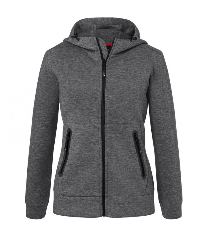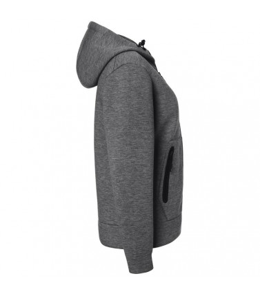 92% poliestere, 8% elastan. giacca con cappuccio regolabile con cordoncino, tasca a marsupio con cerniera, leggermente sfiancata.