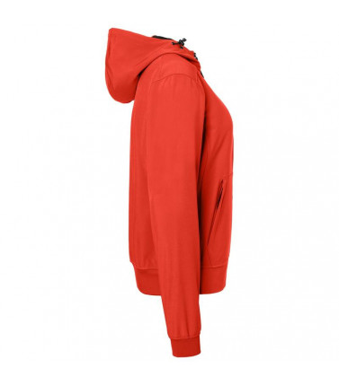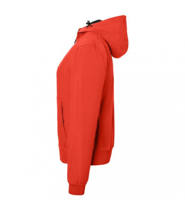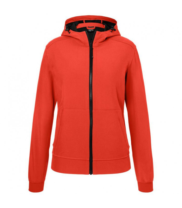 94% poliestere, 6% elastan. giacca in softshell a 2 strati con cappuccio, parte interna in contrasto, elastico in vita e nei polsini. tasca a marsupio con cerniera, 1 tasca interna, cappuccio regolabile, leggermente sfiancata.