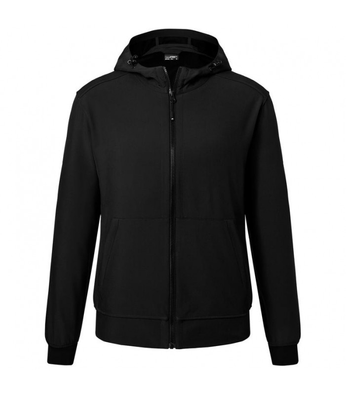 94% poliestere, 6% elastan. giacca in softshell a 2 strati con cappuccio, parte interna in contrasto, elastico in vita e nei polsini. tasca a marsupio con cerniera, 1 tasca interna, cappuccio regolabile.