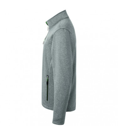 100% poliestere. giacca in softshell a 2 strati, parte interna in pile di colore contrastante. cerniera frontale nascosta con protezione per il mento, collo alto, 2 tasche laterali e 1 tasca sul petto con cerniera.